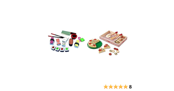 Amazon Com Melissa Doug Sushi Slicing Play Set Pizza Party Play Set 63 Pieces Toys Games